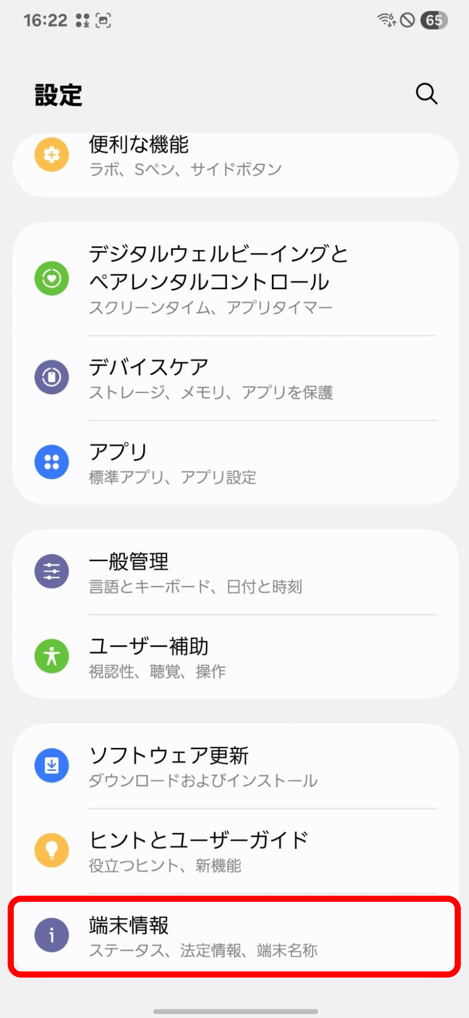 Galaxyスマホの機種情報の確認