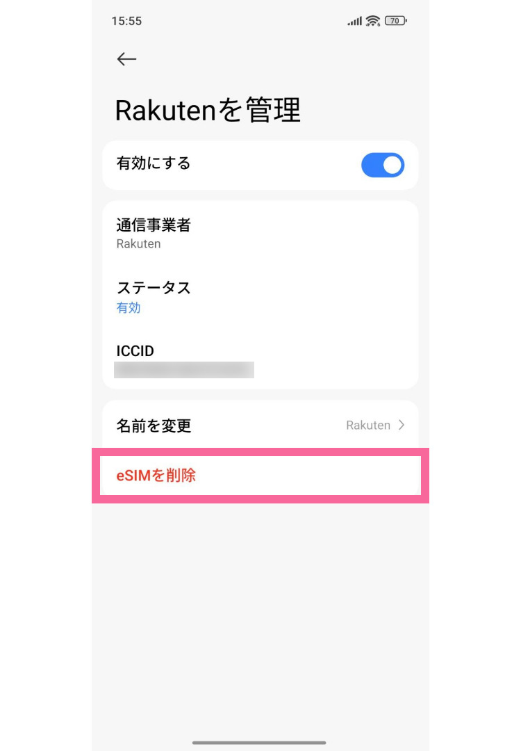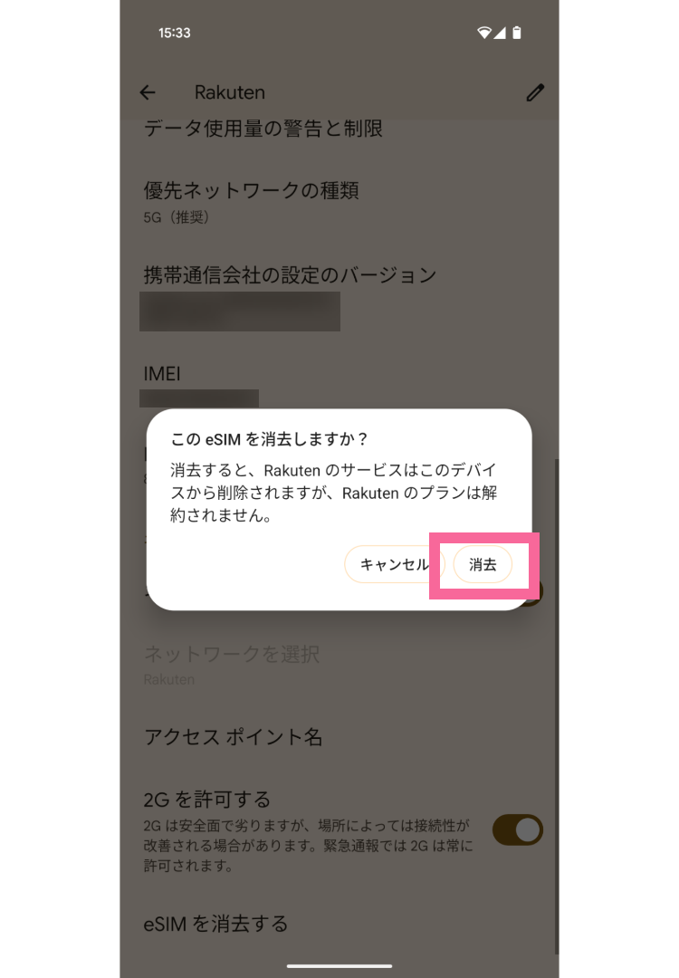以上で、eSIMの設定を削除できました。