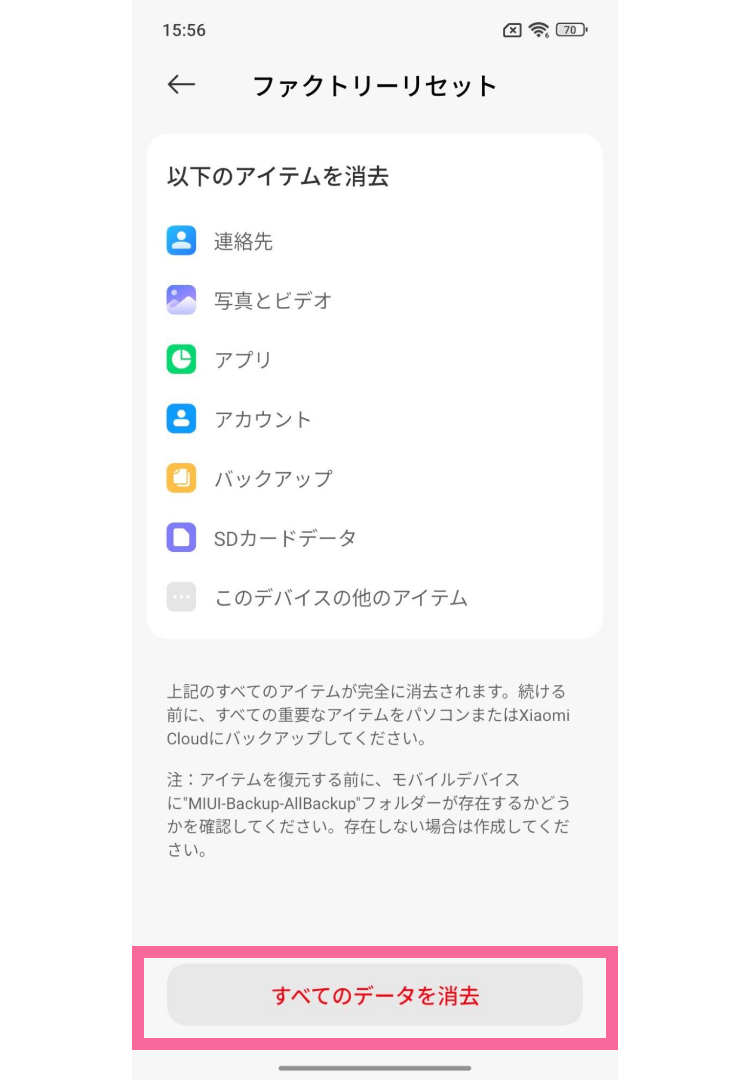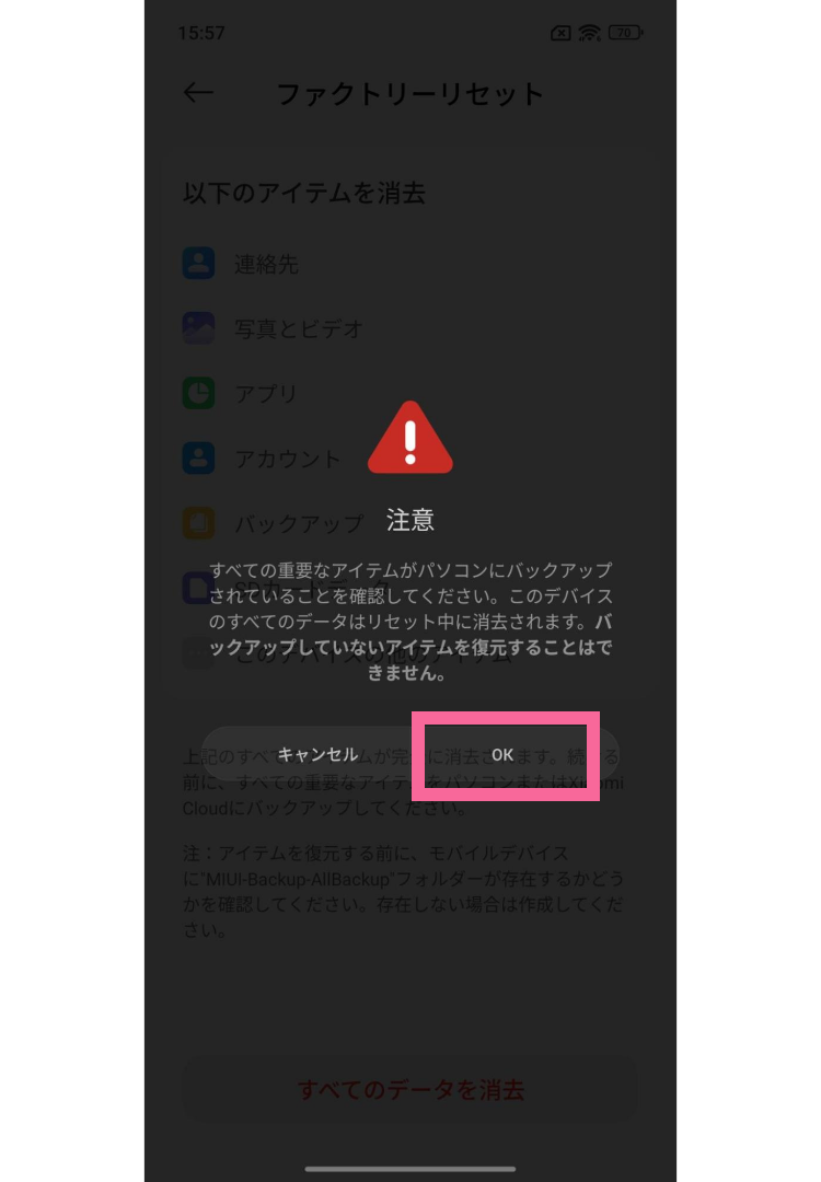Xiaomiスマホの初期化は簡単!